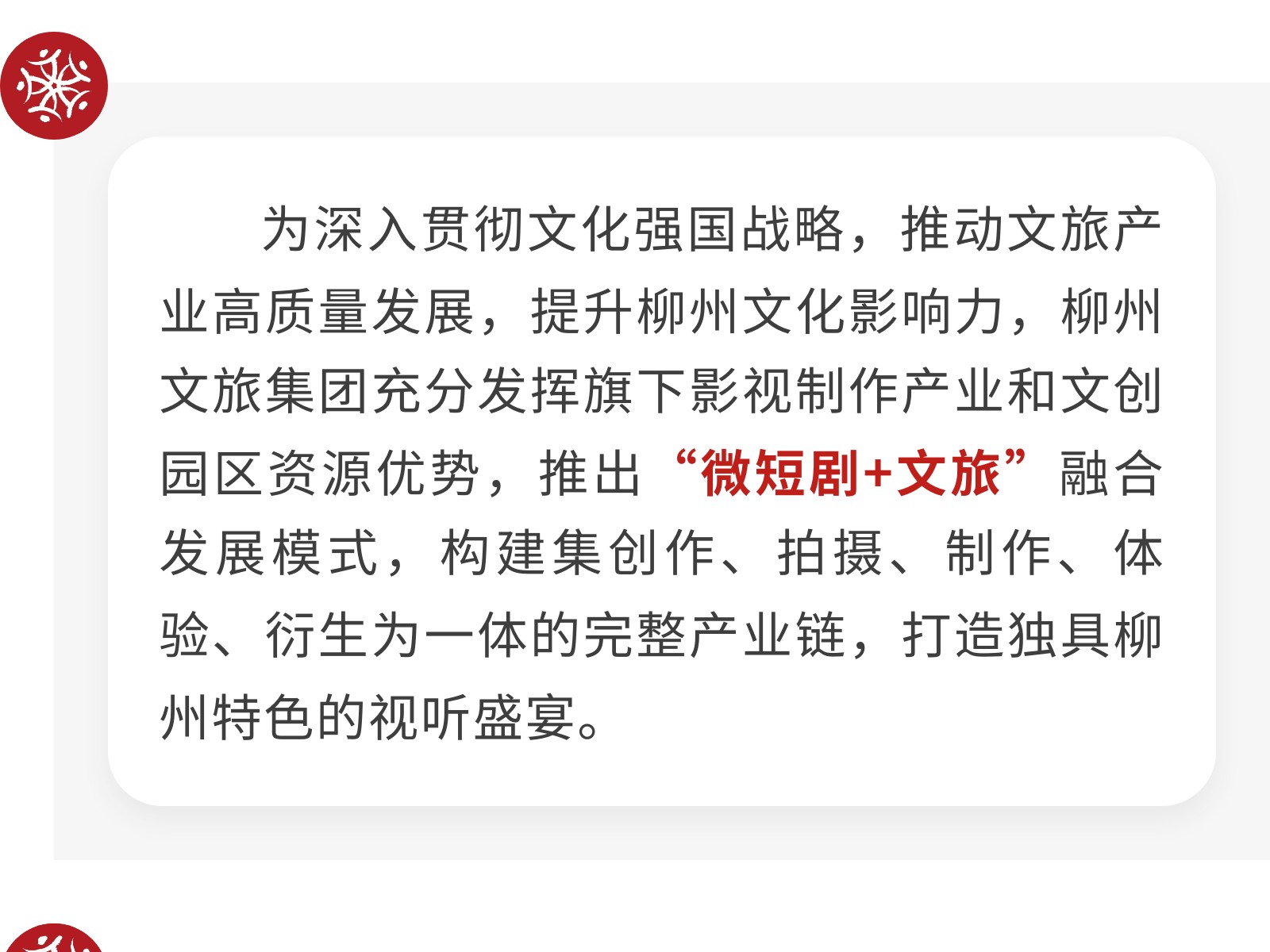 柳州文旅集團探索“微短劇+文旅”融合發(fā)展新模式 發(fā)布時間:2025年07月02日 10時來源:本站原創(chuàng)瀏覽:238 人次