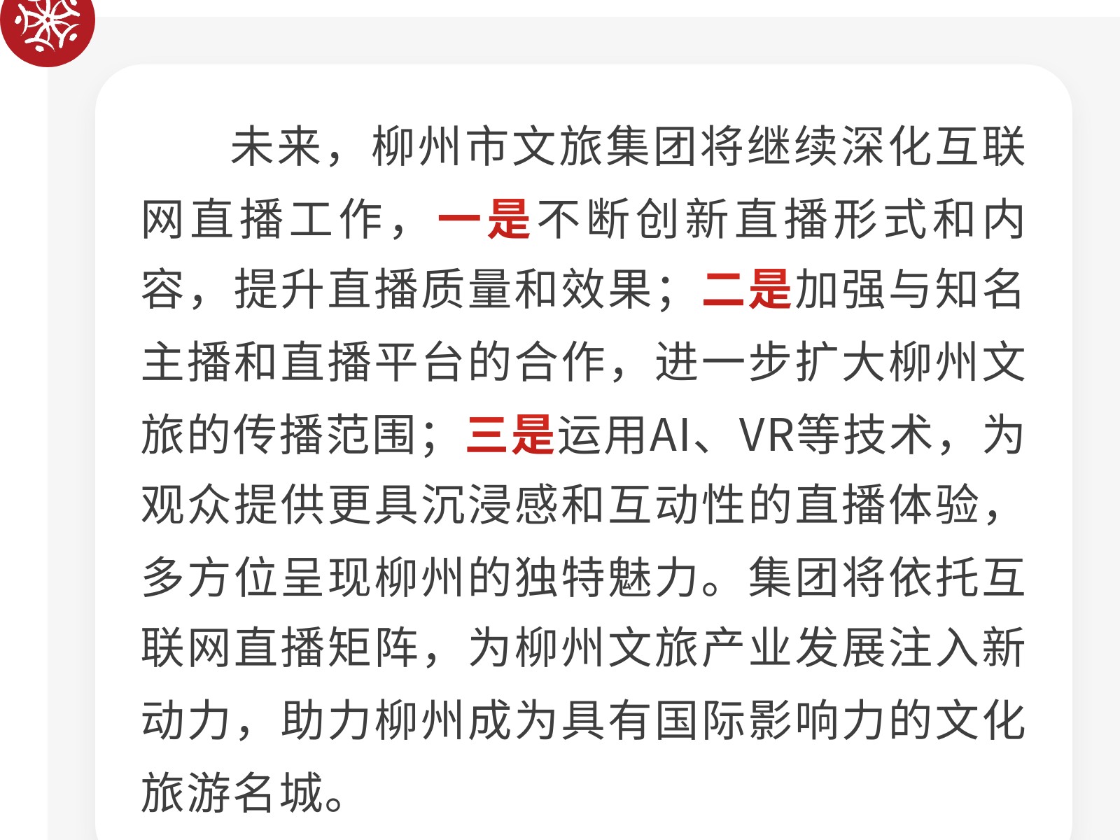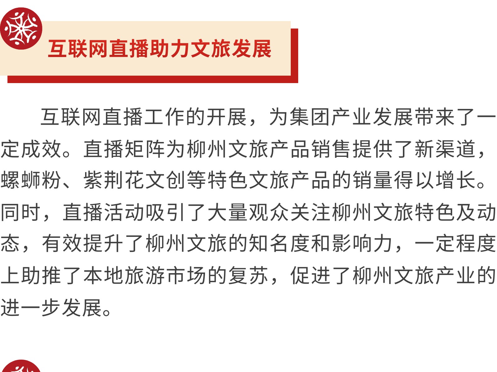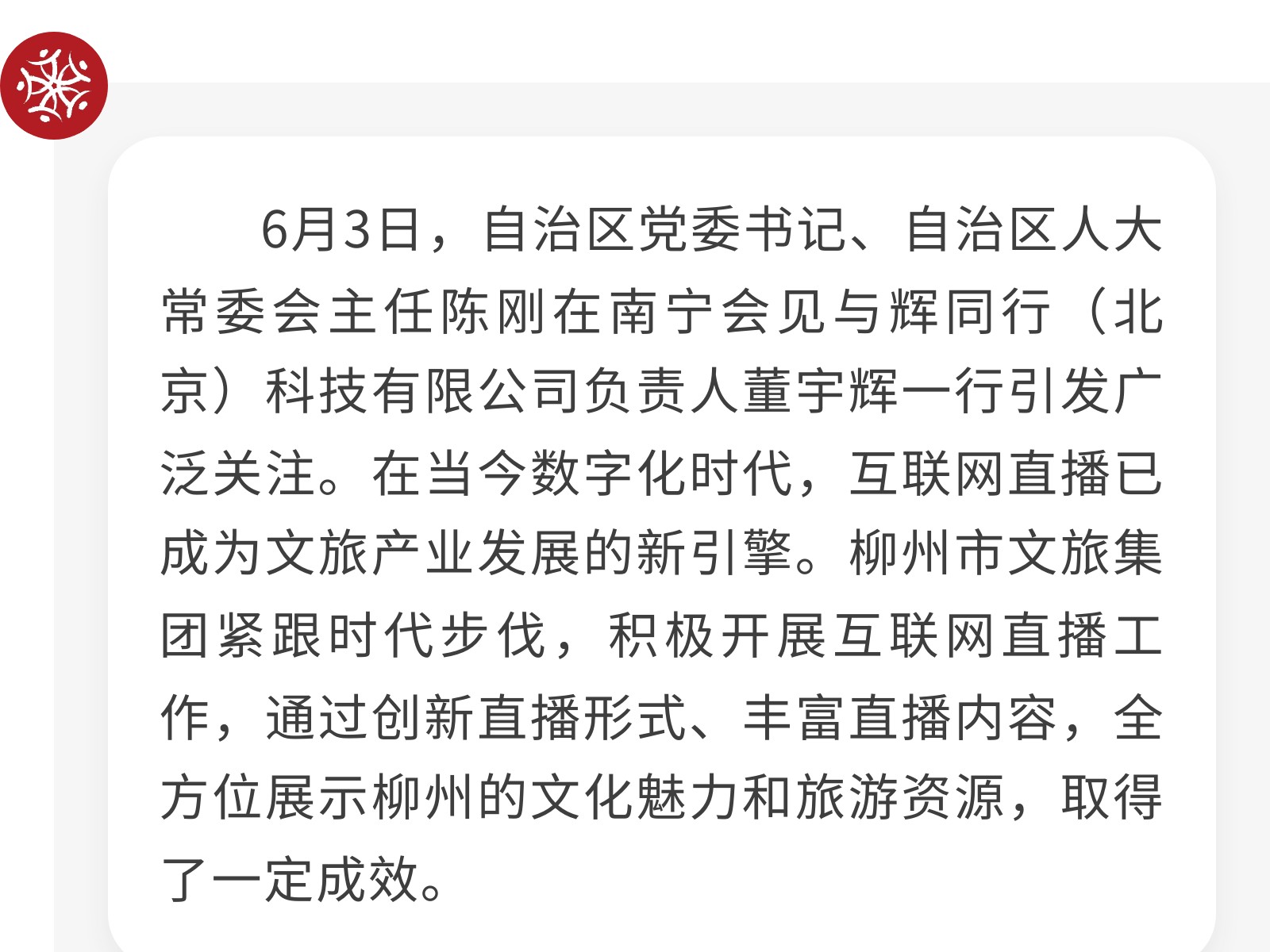 柳州市文旅集團(tuán)積極探索互聯(lián)網(wǎng)直播矩陣,助力城市文旅新發(fā)展 發(fā)布時間:2025年06月12日 20時來源:本站原創(chuàng)瀏覽:143 人次