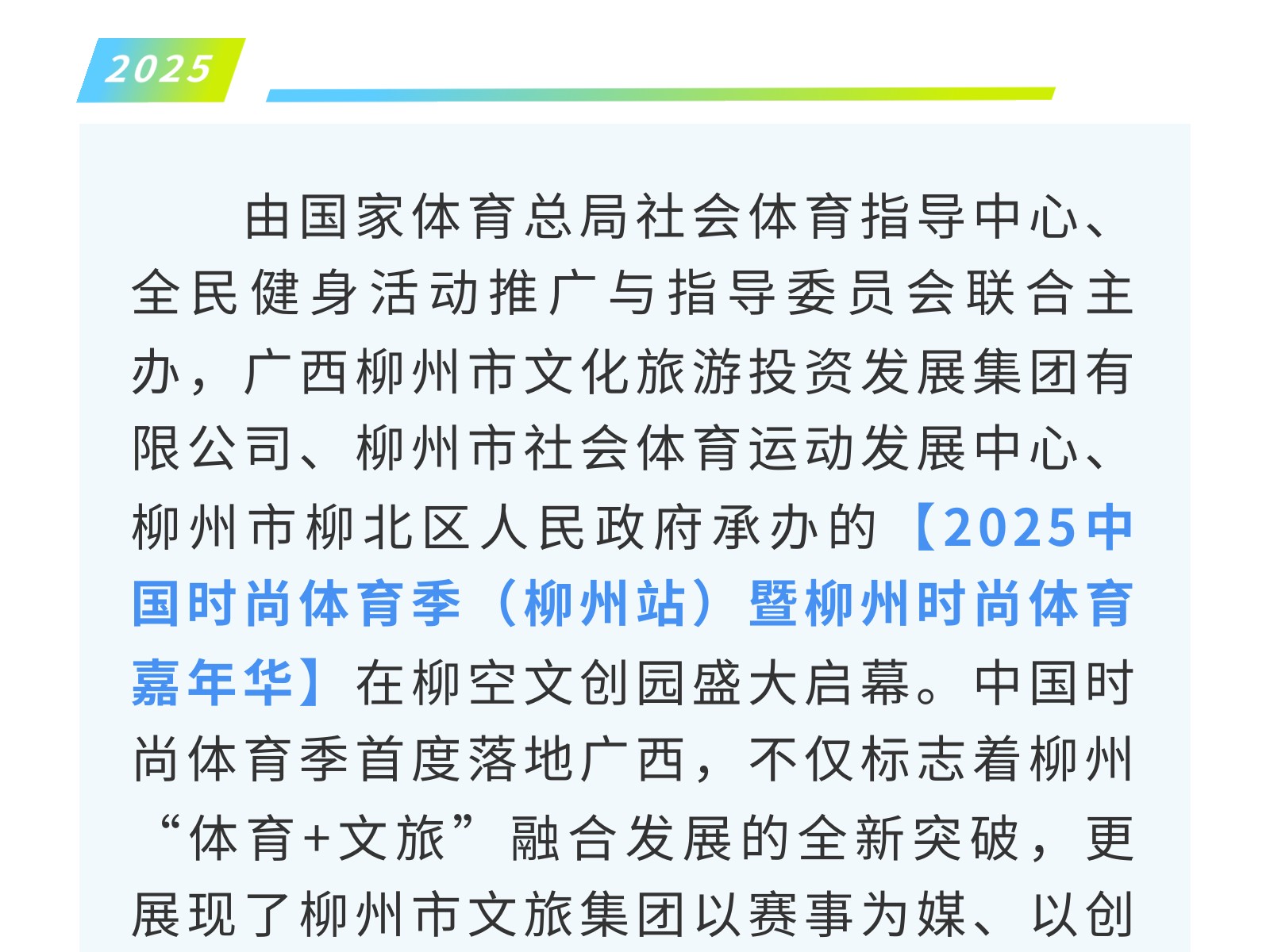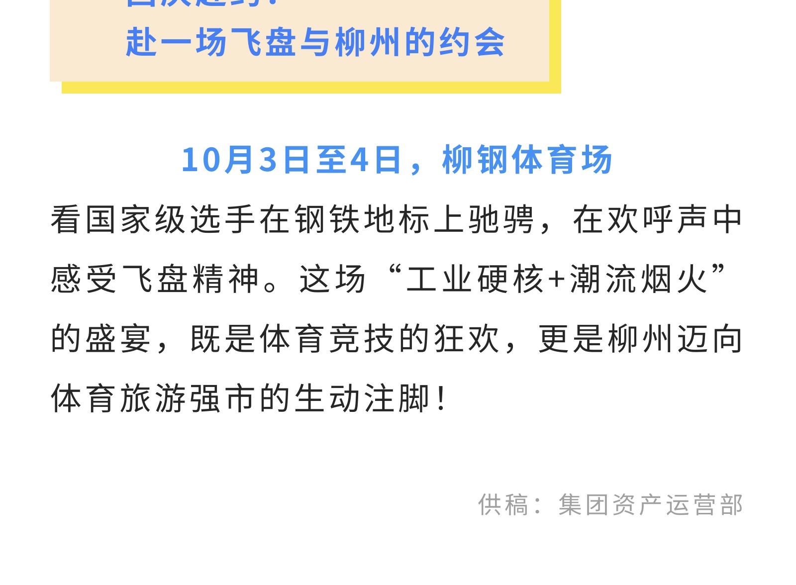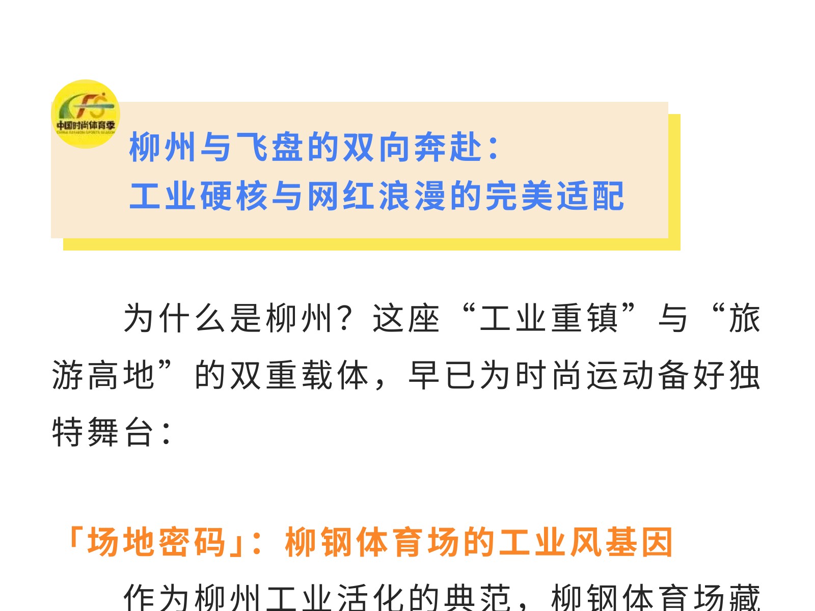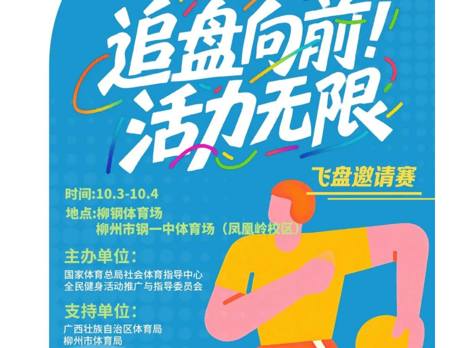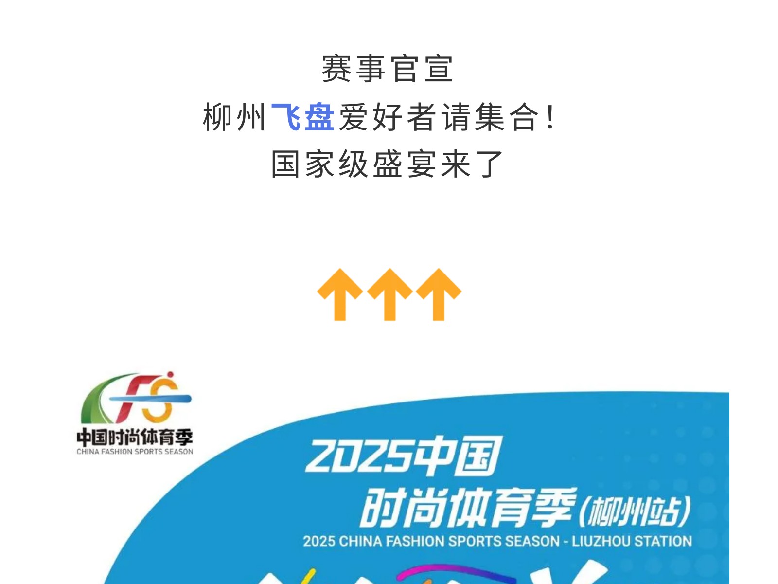 官宣!2025中國時(shí)尚體育季(柳州站)飛盤邀請賽來襲!10月3-4日燃情開幕! 發(fā)布時(shí)間:2025年09月27日 10時(shí)來源:本站原創(chuàng)瀏覽:139 人次