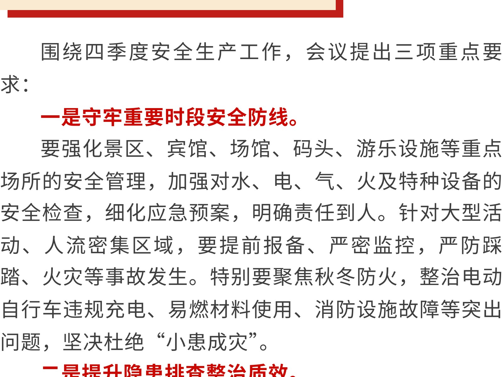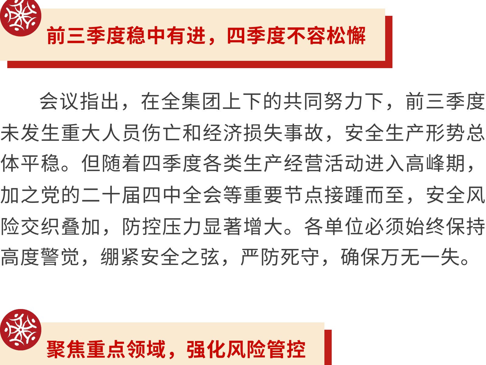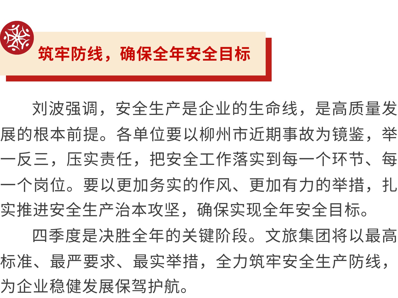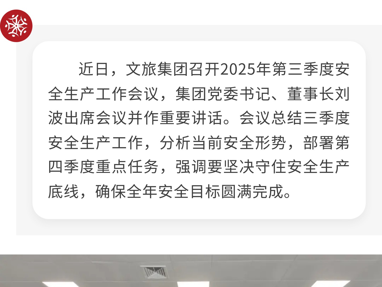 【壓實(shí)責(zé)任 筑牢防線】文旅集團(tuán)全面部署2025年第四季度安全生產(chǎn)工作 發(fā)布時(shí)間:2025年10月24日 10時(shí)來(lái)源:本站原創(chuàng)瀏覽:111 人次