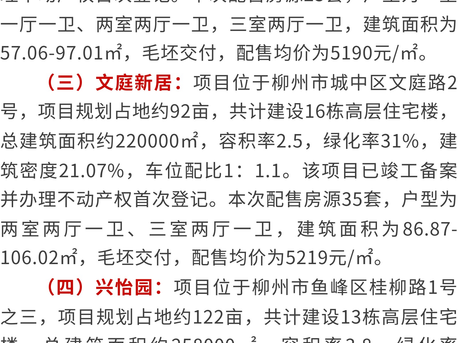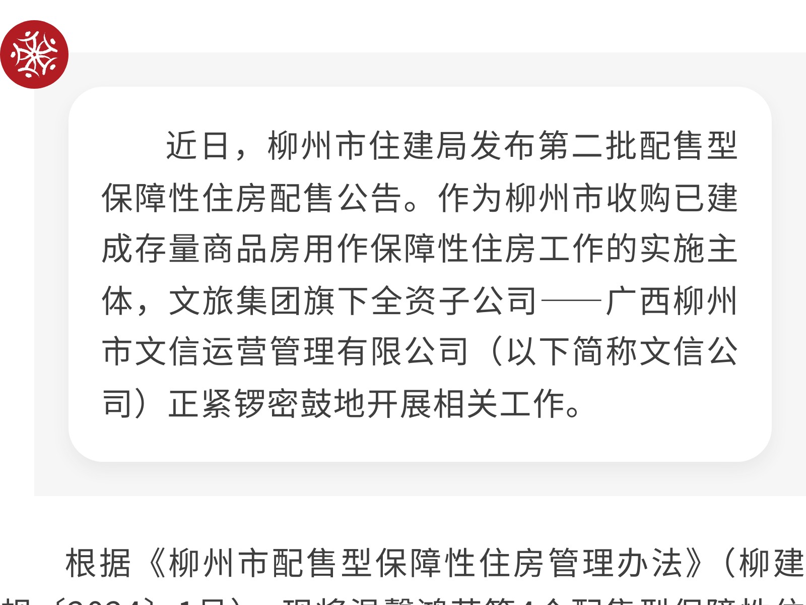 柳州市第二批配售型保障性住房配售公告 發(fā)布時間:2025年11月08日 11時來源:本站原創(chuàng)瀏覽:135 人次