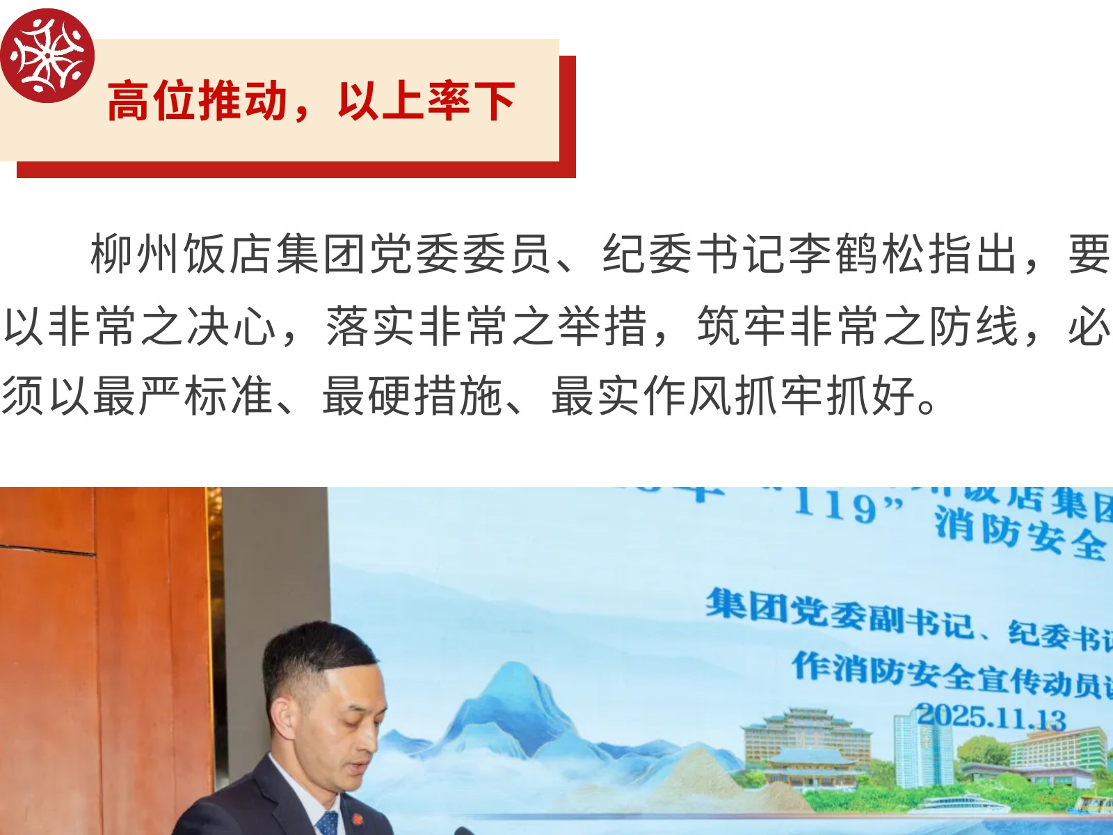 【全民消防 生命至上】文旅集團柳州飯店這樣“硬核”守護您! 發(fā)布時間:2025年11月19日 15時來源:本站原創(chuàng)瀏覽:51 人次
