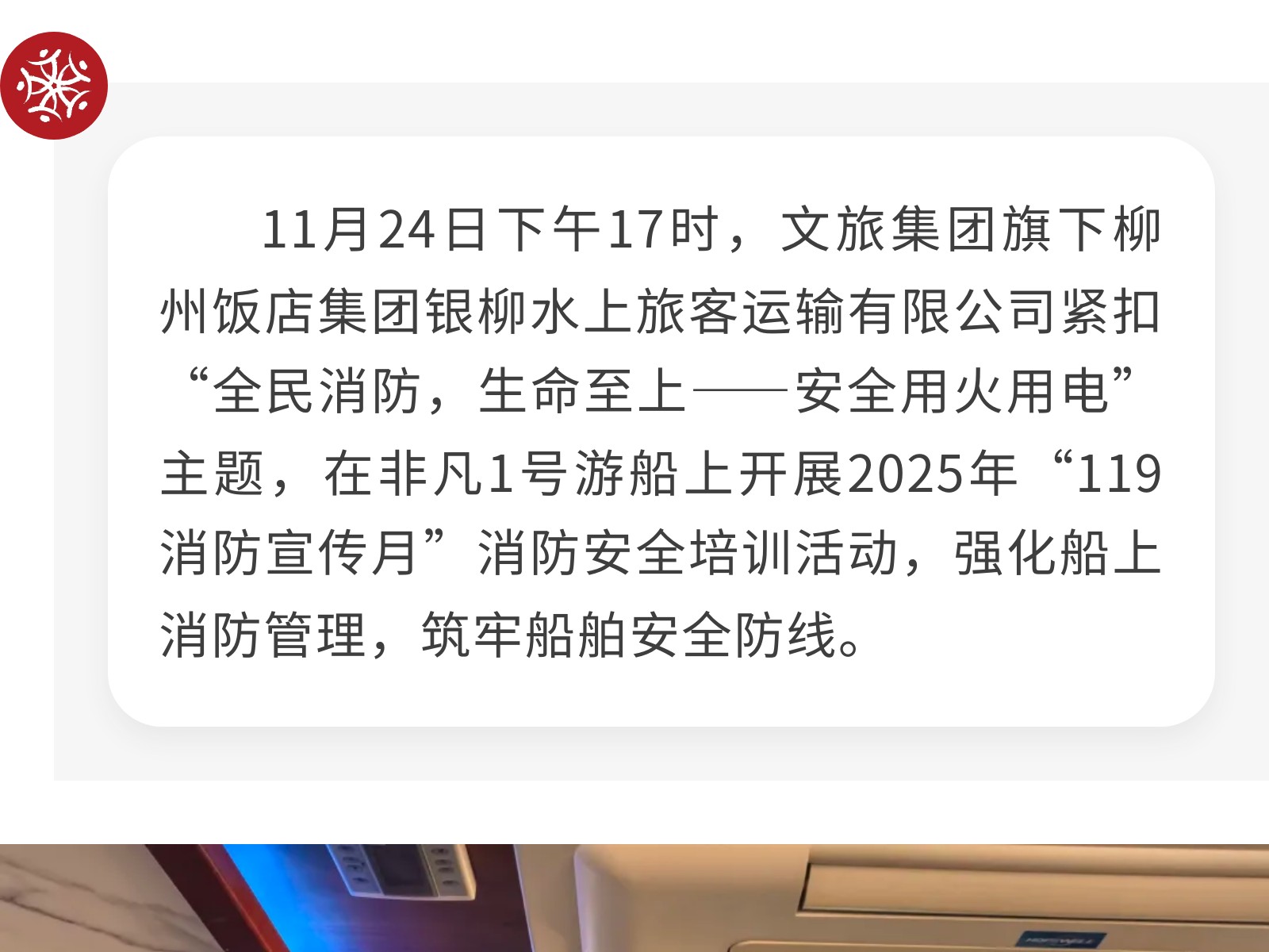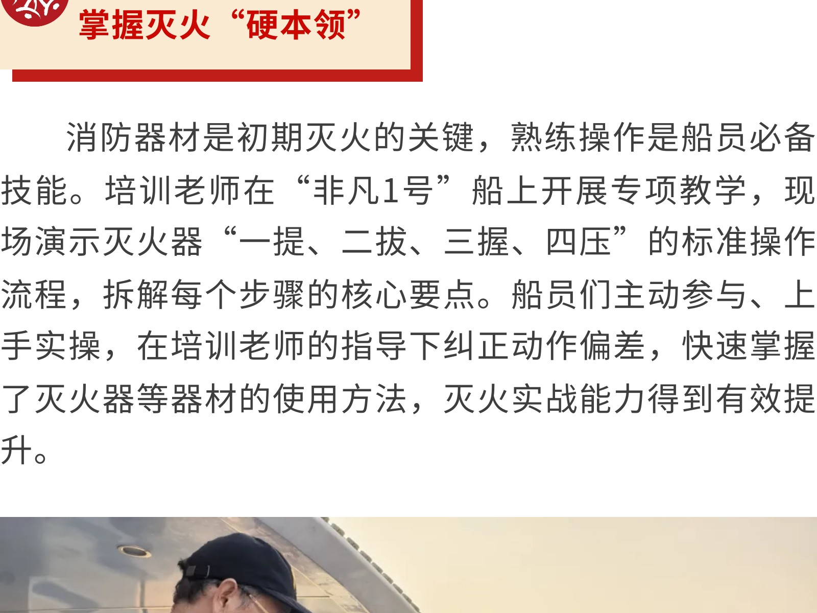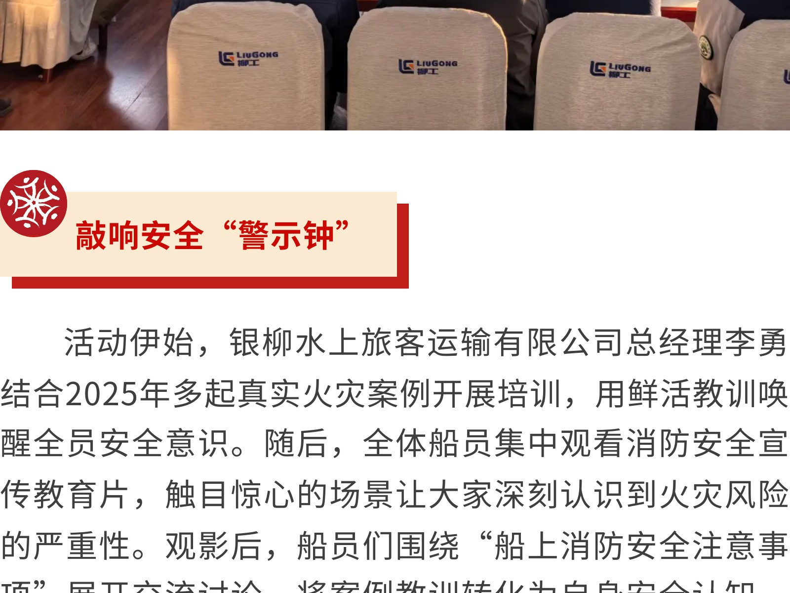 【強(qiáng)化船上消防,守護(hù)航行安全】銀柳水上旅客運(yùn)輸有限公司開展消防安全培訓(xùn)活動 發(fā)布時間:2025年12月09日 10時來源:本站原創(chuàng)瀏覽:34 人次