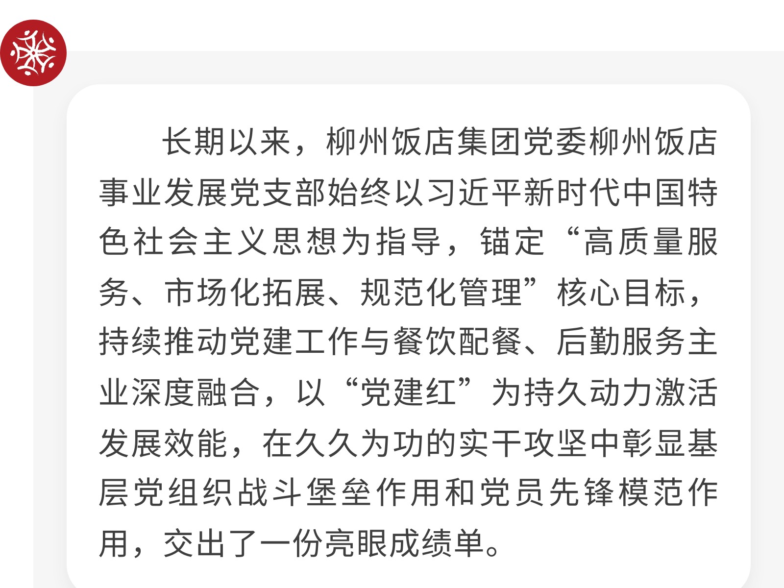 【實(shí)干繪就新答卷 黨建引領(lǐng)業(yè)務(wù)優(yōu)】柳州飯店事業(yè)發(fā)展黨支部推動(dòng)黨業(yè)融合紀(jì)實(shí) 發(fā)布時(shí)間:2025年12月10日 10時(shí)來源:本站原創(chuàng)瀏覽:34 人次