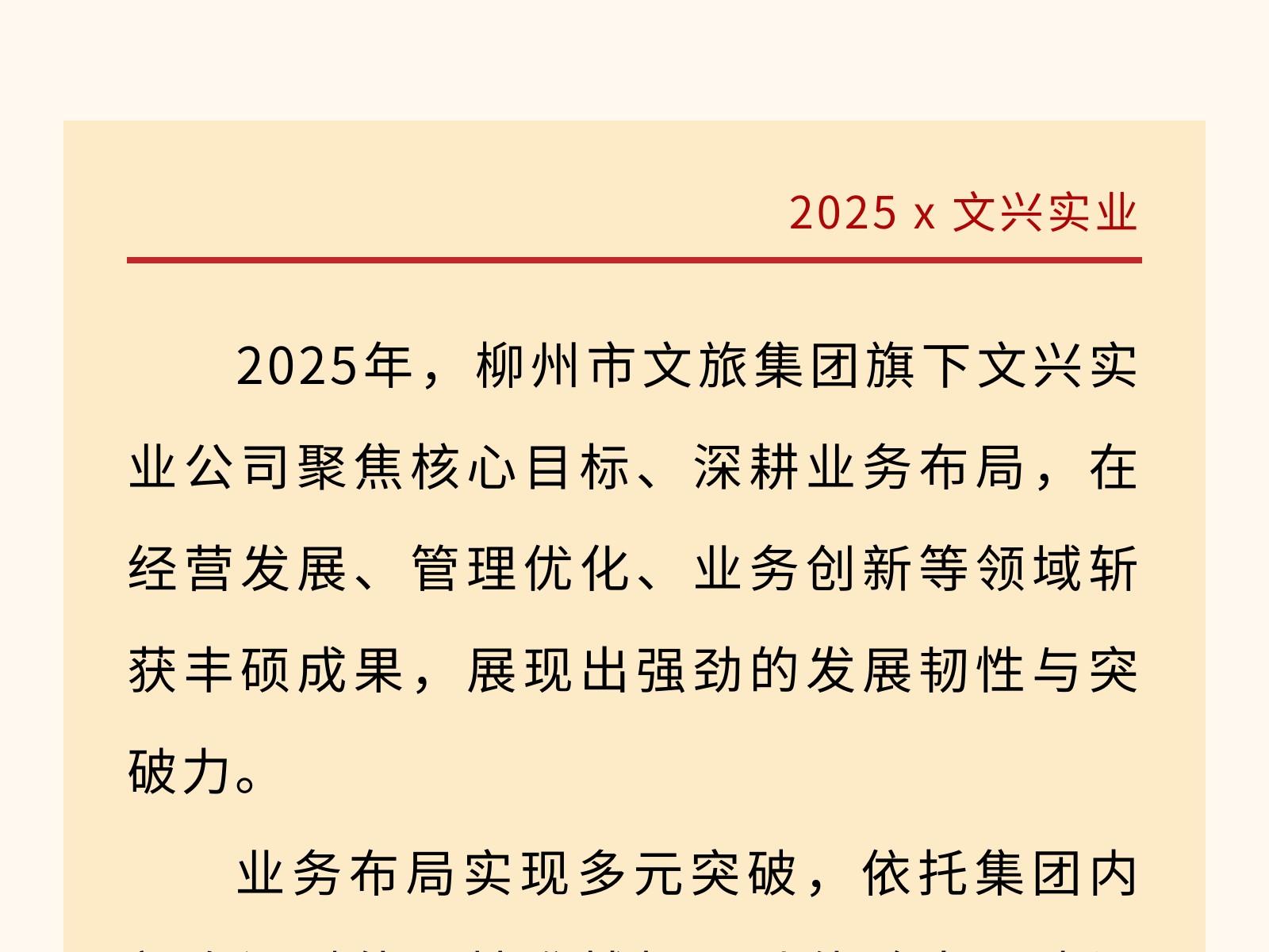 【文旅聚勢2025】多元創(chuàng)新拓新局,實干賦能高質(zhì)量發(fā)展——文興實業(yè)激活發(fā)展新動能 發(fā)布時間:2025年12月24日 10時來源:本站原創(chuàng)瀏覽:50 人次