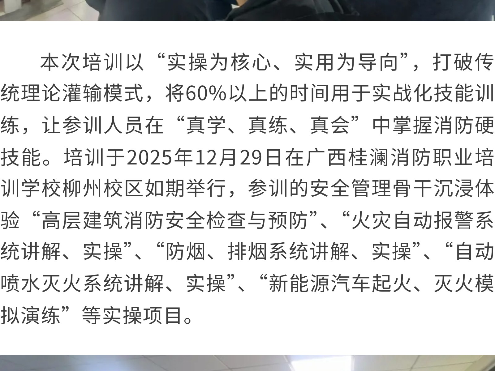 實戰(zhàn)礪能強(qiáng)本領(lǐng) 消防護(hù)航促發(fā)展 發(fā)布時間:2026年01月02日 13時來源:本站原創(chuàng)瀏覽:24 人次