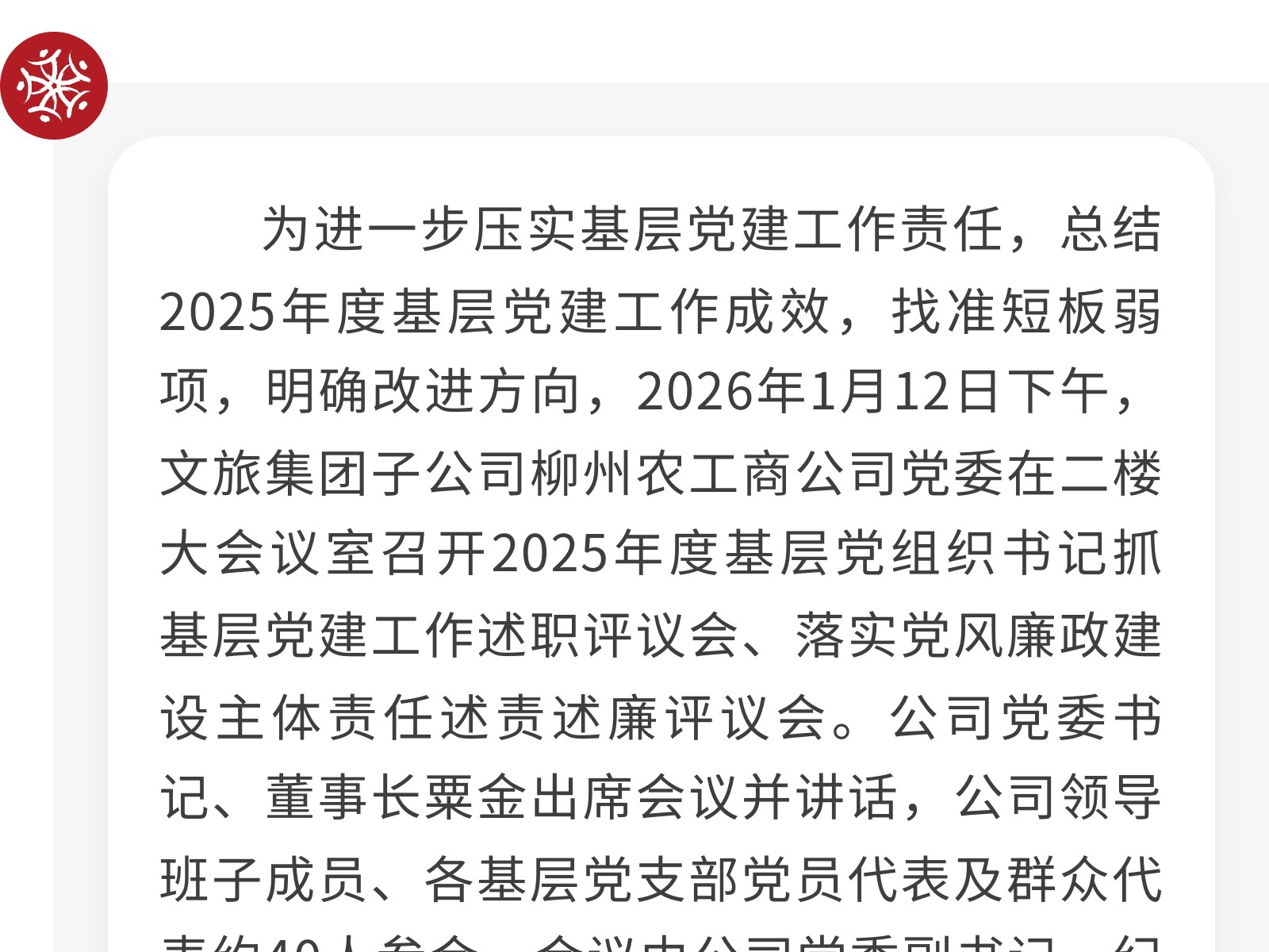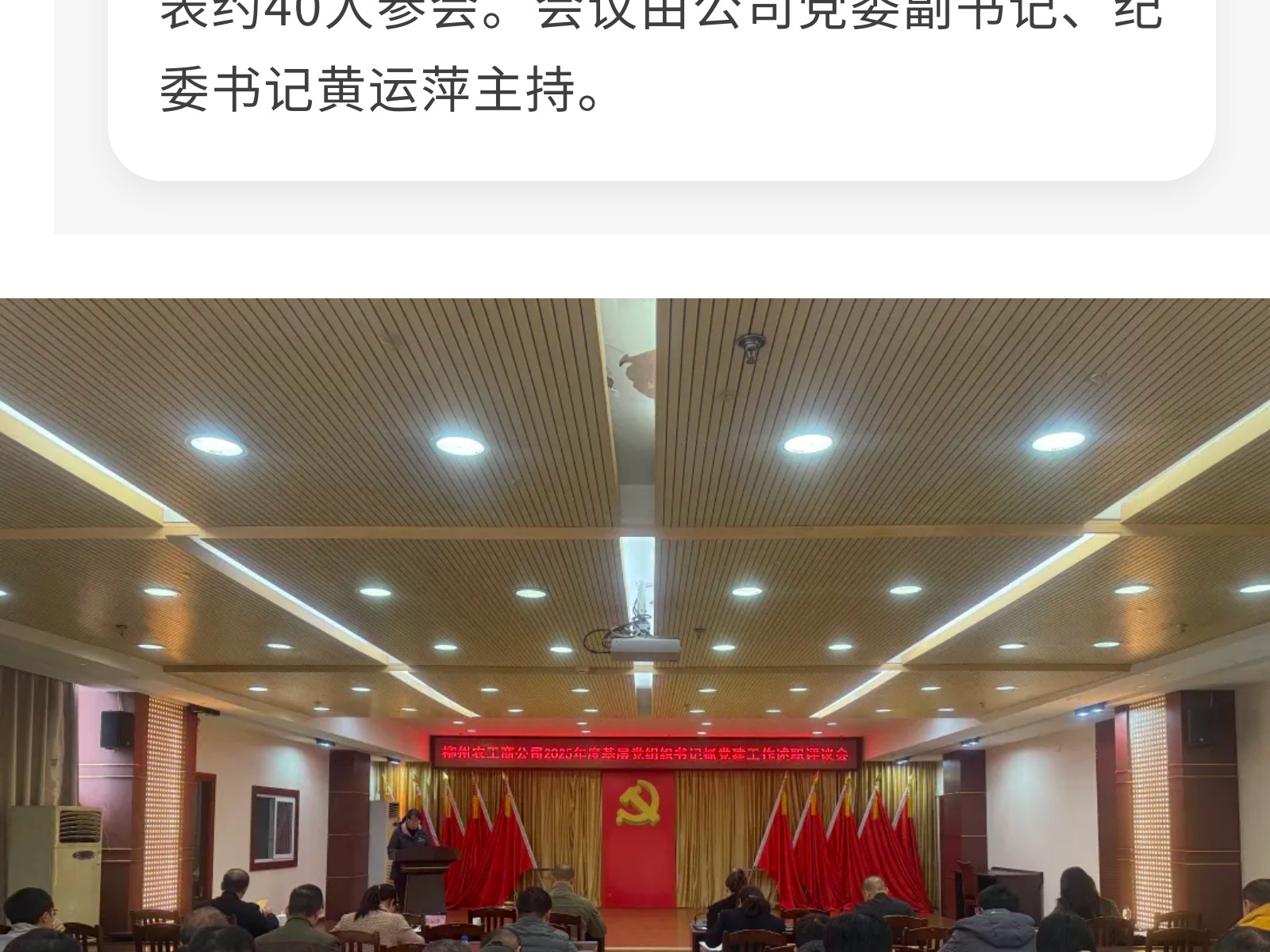 以述促干明方向,以評(píng)提質(zhì)啟新程——柳州農(nóng)工商公司黨委召開(kāi)2025年度基層黨組織書(shū)記述職評(píng)議會(huì) 發(fā)布時(shí)間:2026年01月14日 14時(shí)來(lái)源:本站原創(chuàng)瀏覽:26 人次