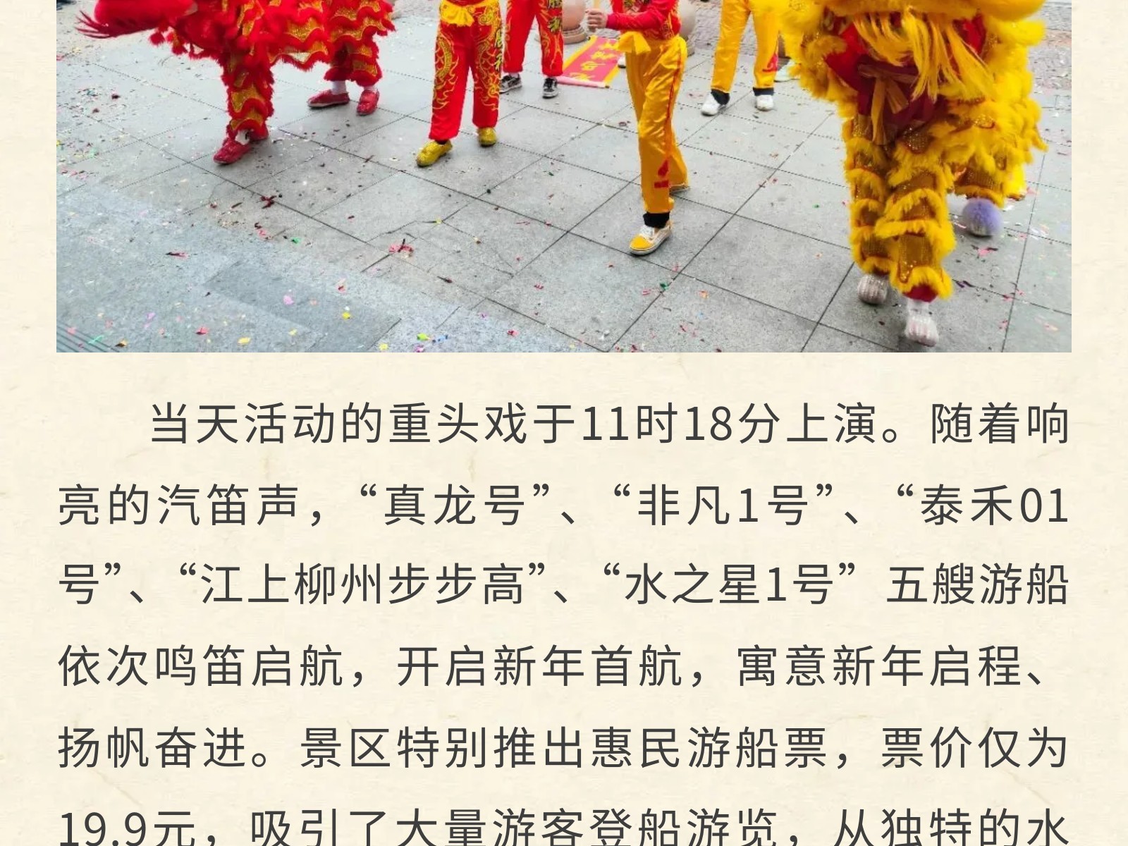 百里柳江景區(qū)“龍馬精神”迎新春,正月初一五船齊發(fā)迎客來 發(fā)布時間:2026年02月17日 13時來源:本站原創(chuàng)瀏覽:12 人次
